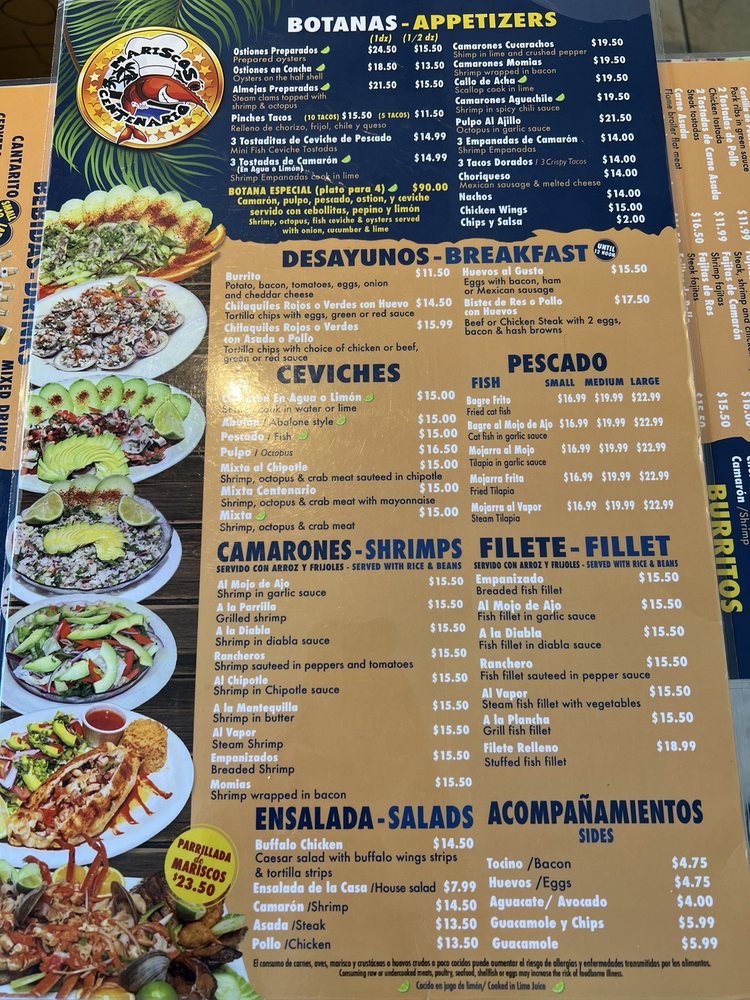 Introducing el Centenario Grill y Seafood, a vibrant Mexican seafood restaurant located in Santa Ana, CA. The menu offers a variety of fresh and authentic dishes, such as ceviche de camarĂ³n, pulpo al ajillo, and flavorful enchiladas. Customers have praised the exceptional service, lively atmosphere, and great value for the delicious food. The spacious restaurant is perfect for groups and families, with open karaoke nights adding to the lively ambiance. The staff is quick, attentive, and friendly, ensuring a memorable dining experience. The restaurant also offers delivery, takeout, and catering options, making it convenient for all occasions. Whether you're craving a breakfast burrito or some refreshing ceviche, el Centenario Grill y Seafood is a hidden gem worth a visit.